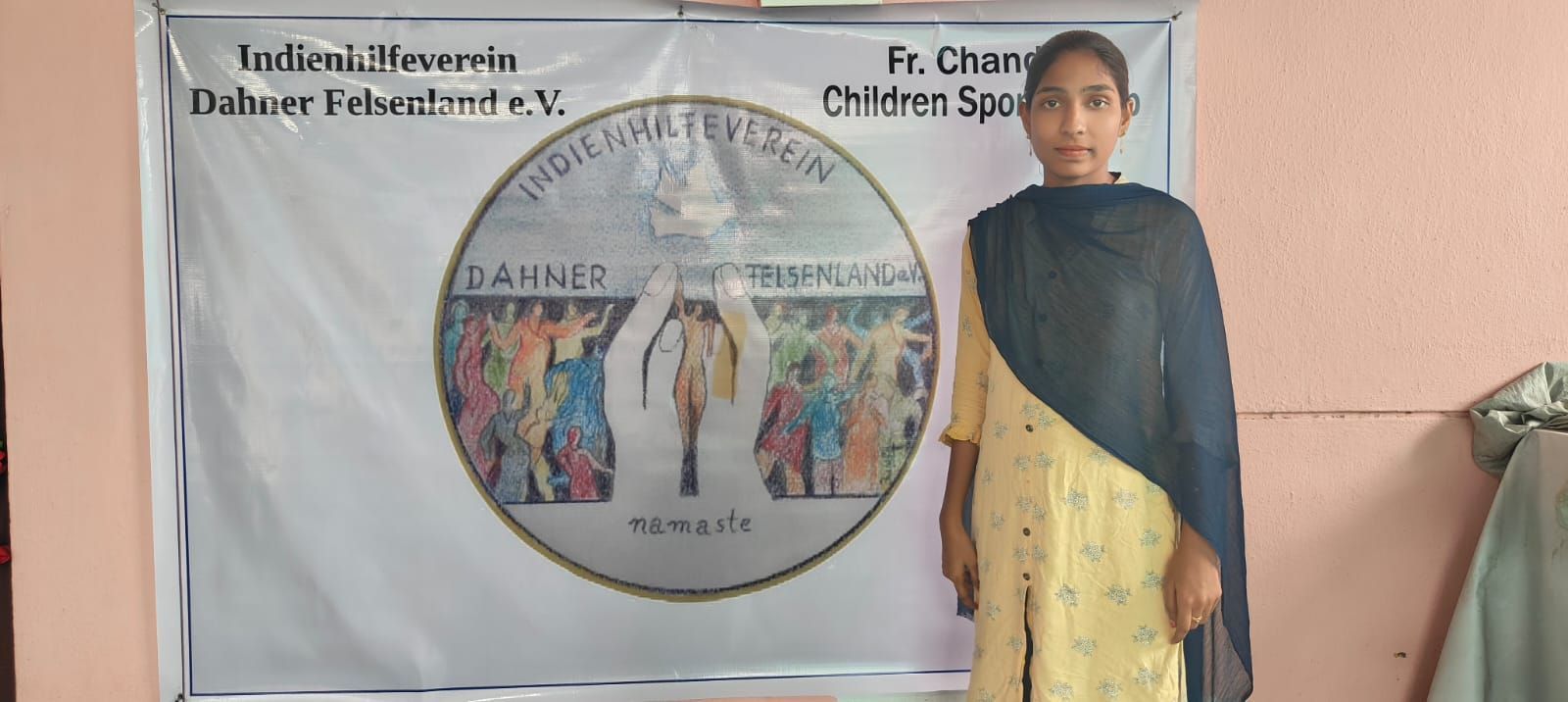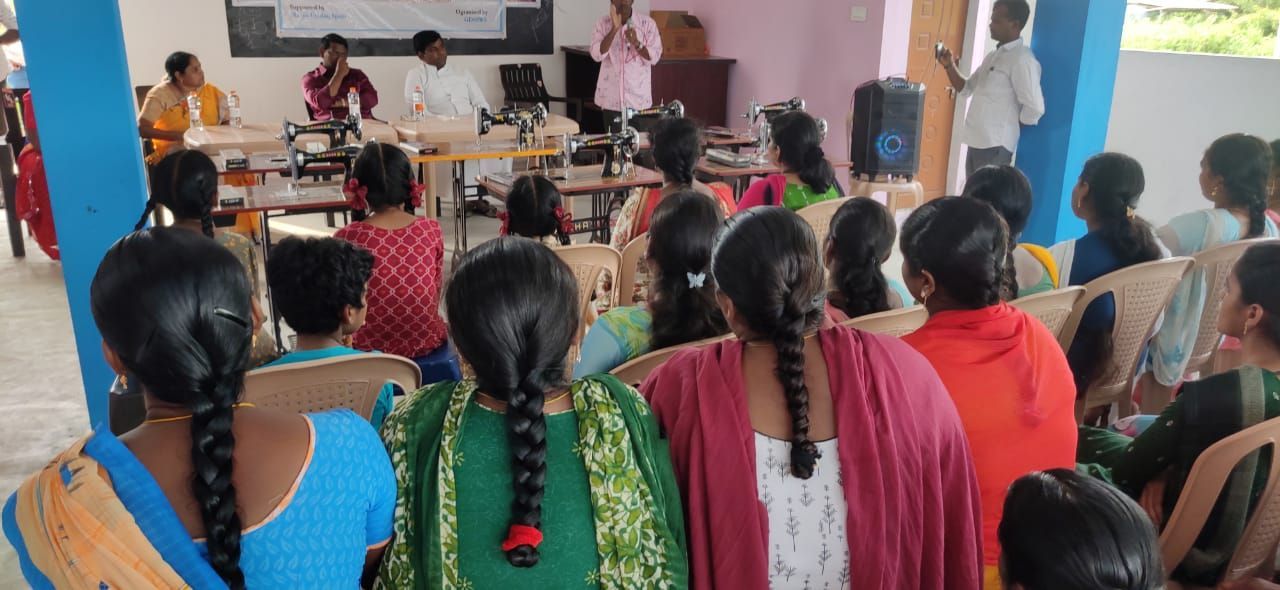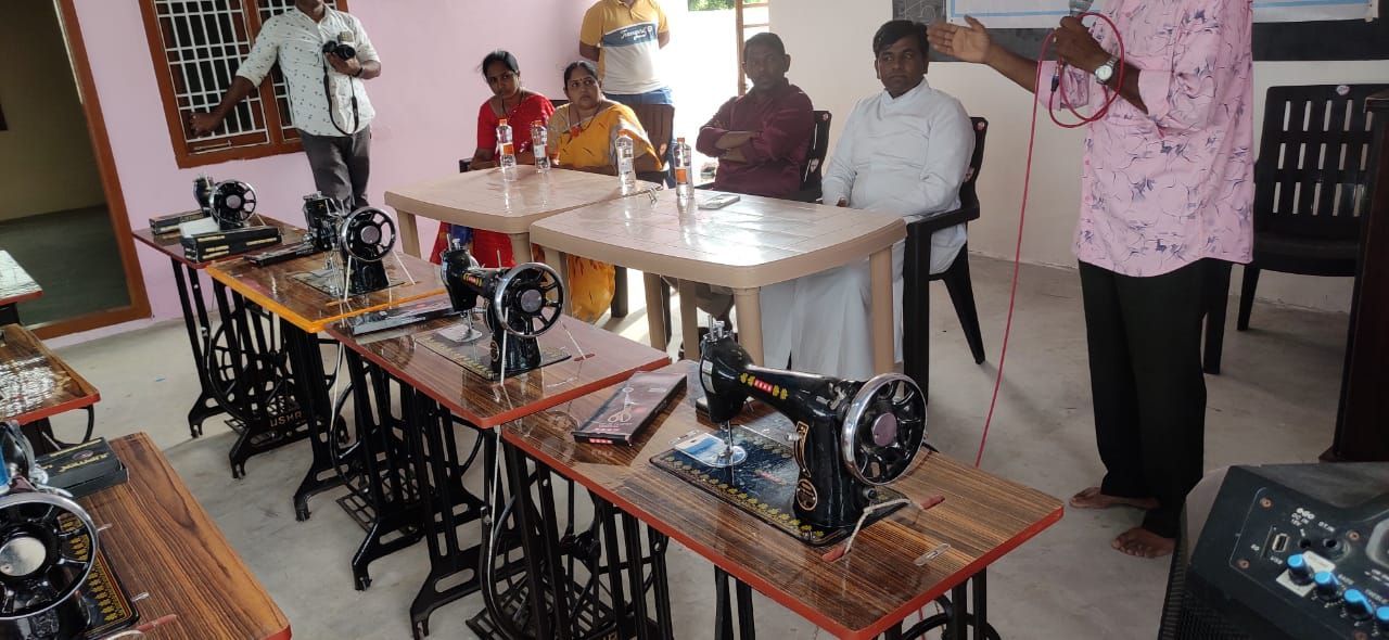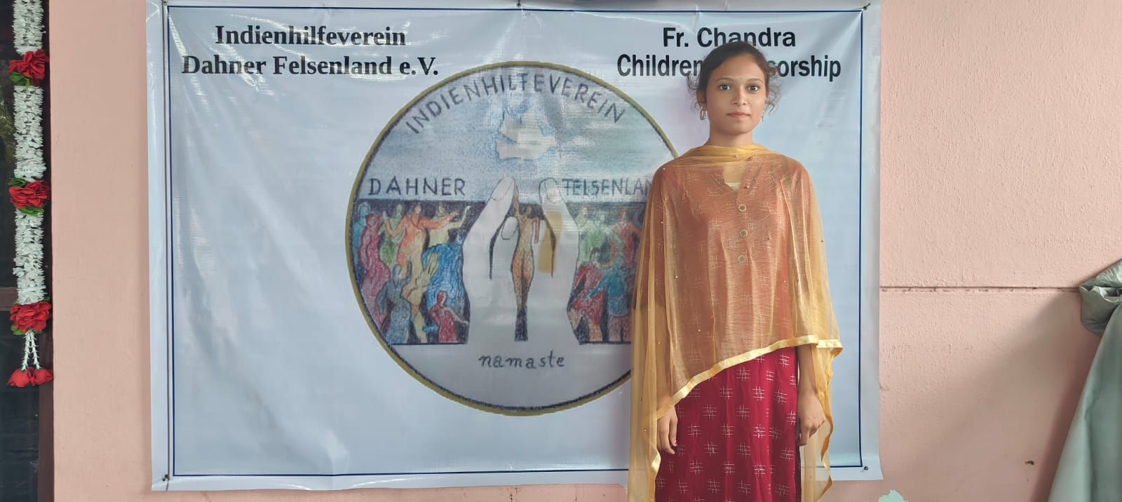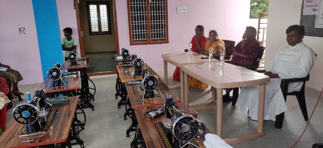 Chandra besucht den ersten Nähkurs in den Räumlichkeiten des Nachhilfezentrums