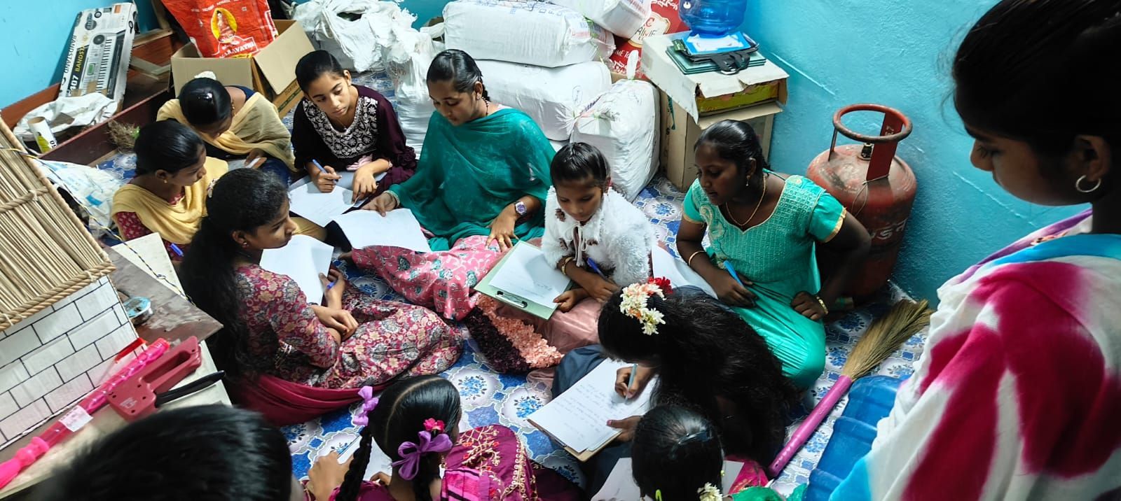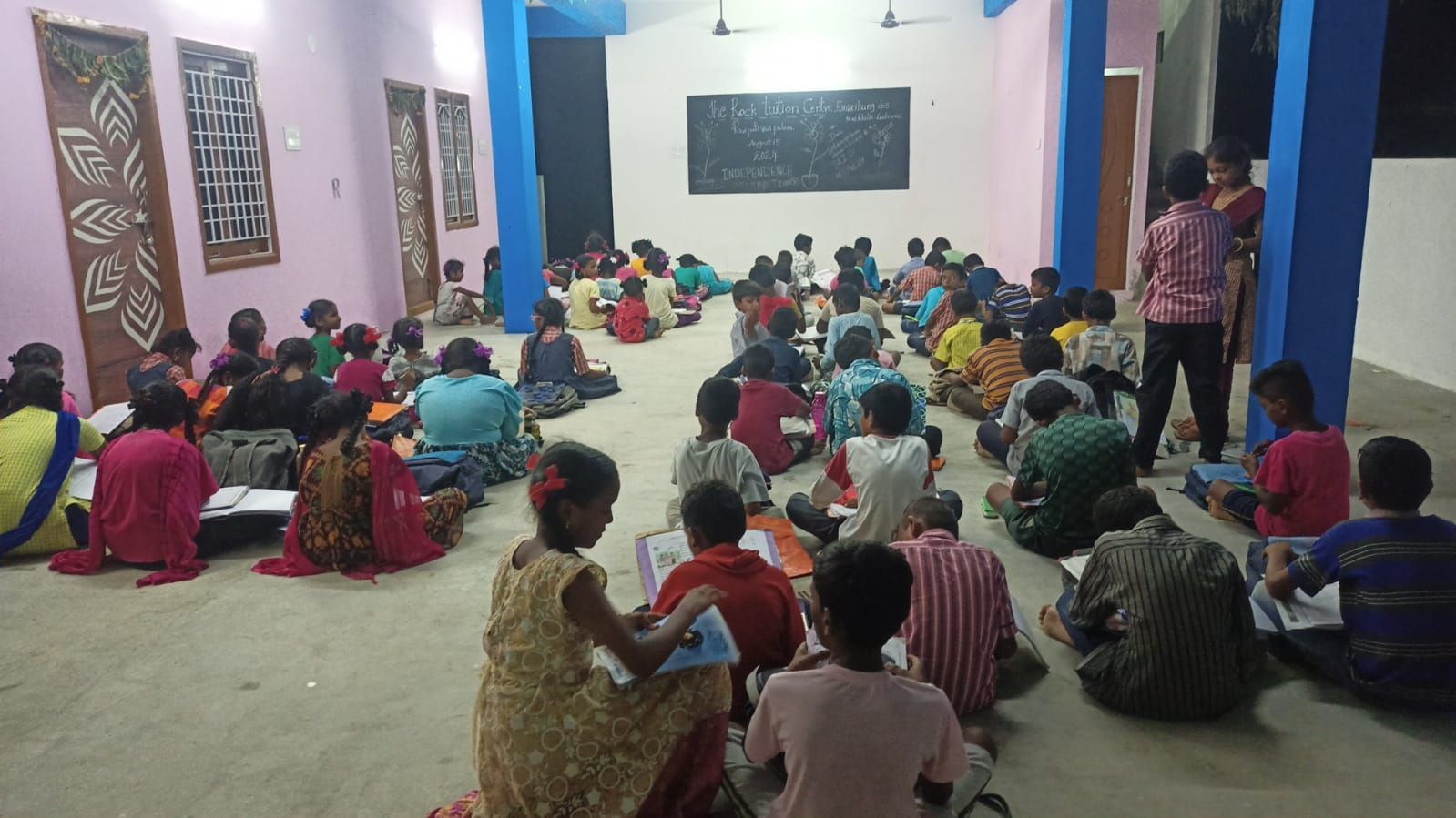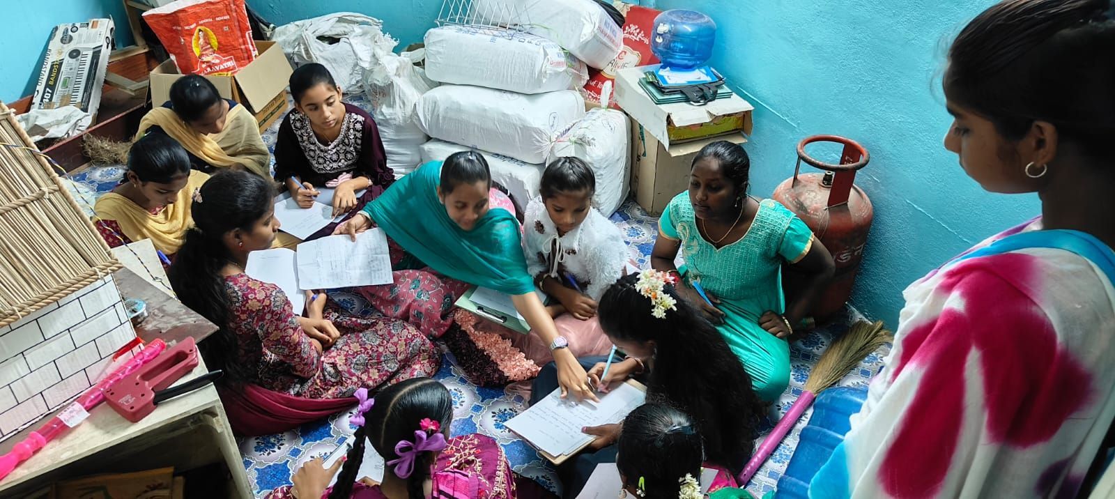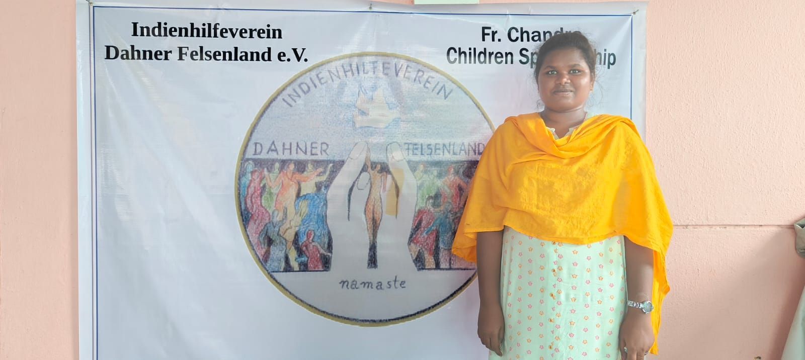 Chandra besucht den ersten Nähkurs in den Räumlichkeiten des Nachhilfezentrums