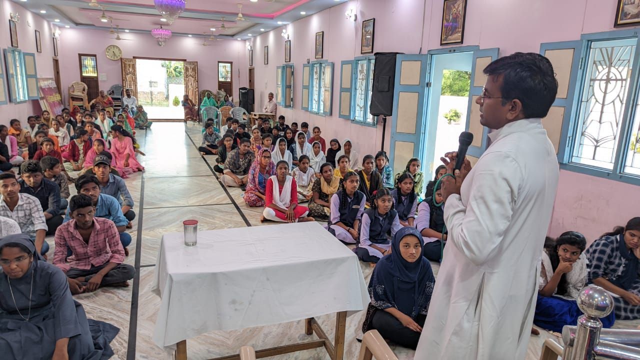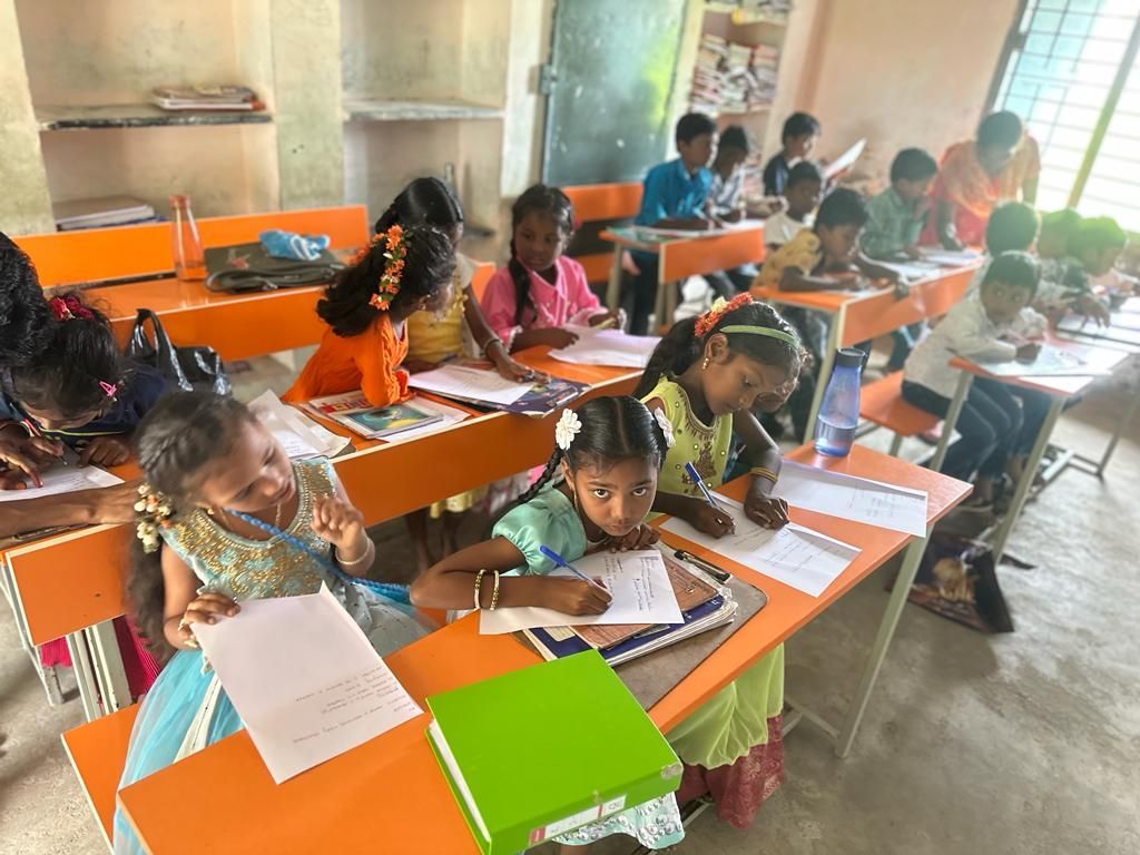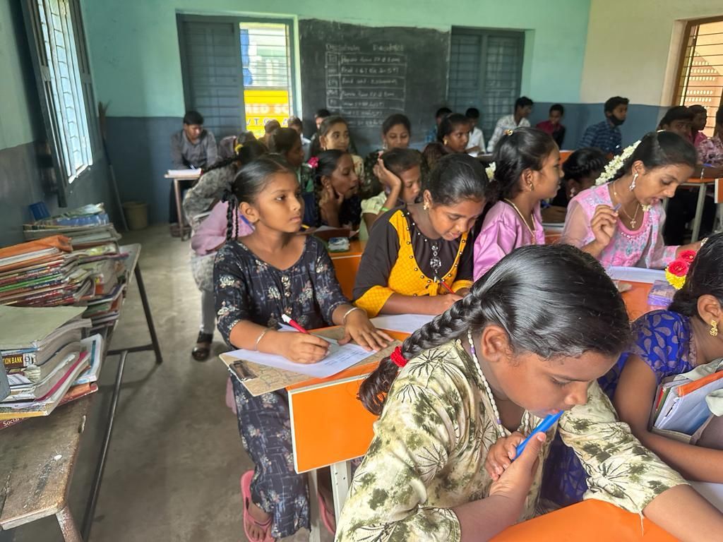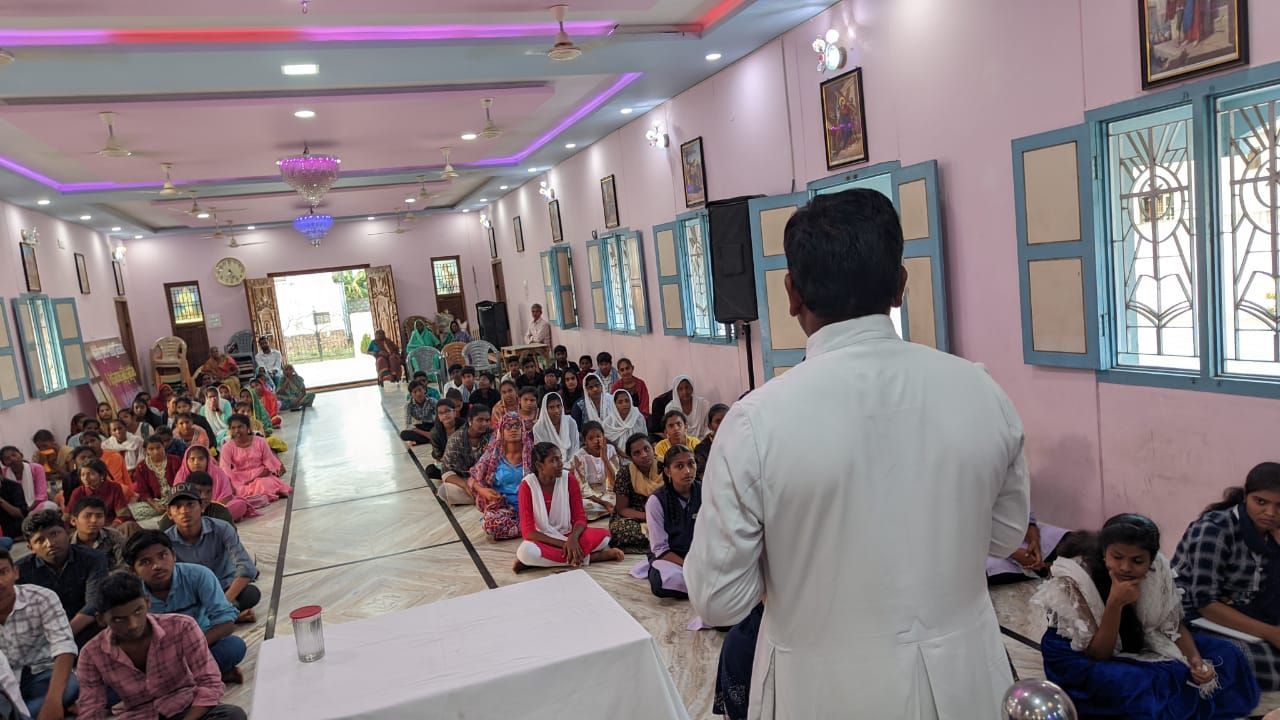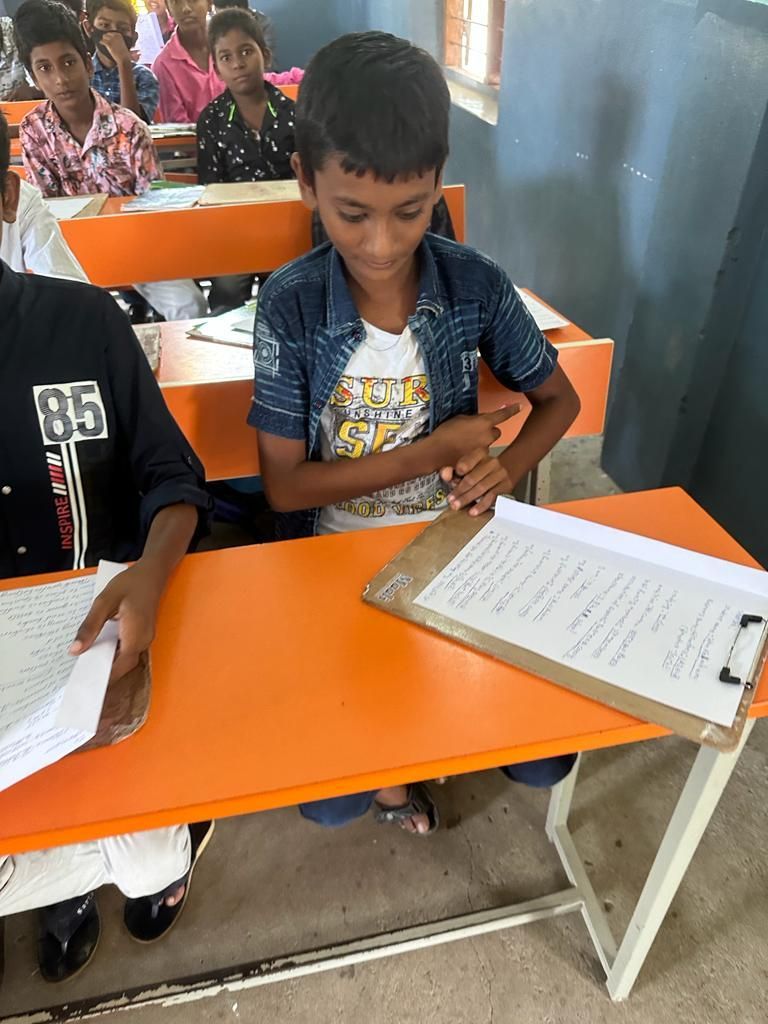 Chandra besucht den ersten Nähkurs in den Räumlichkeiten des Nachhilfezentrums